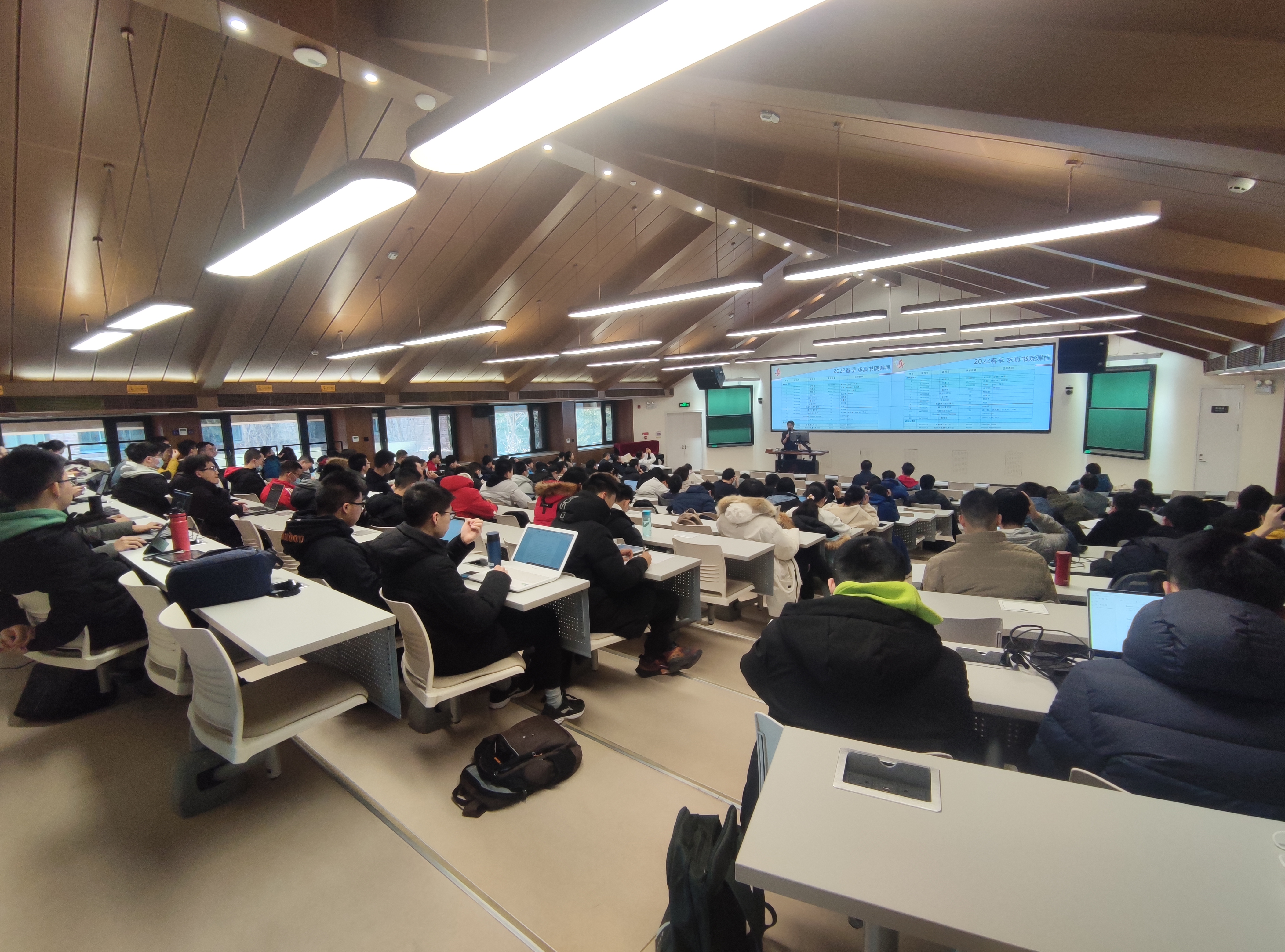 交流会上,李思重点阐述了求真课程的设计理念以及求真多维度学术导向型的评价体系,同时介绍了本学期书院的课程安排、求真学术方面评奖评优的原则机制。李思针对同学们提出的有关分层选课和毕业班综合论文训练等问题给予了解答,同时也鼓励同学们在课余时间积极参与书院组织的求真大讲堂、科学史、不同方向的研讨班等各类书院特色项目。