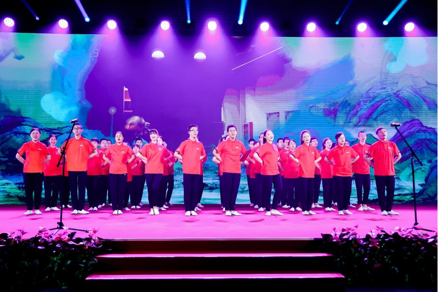 的学子们分别表演了《求真颂》、《凌云歌》和《一砂一世界》合唱曲目。