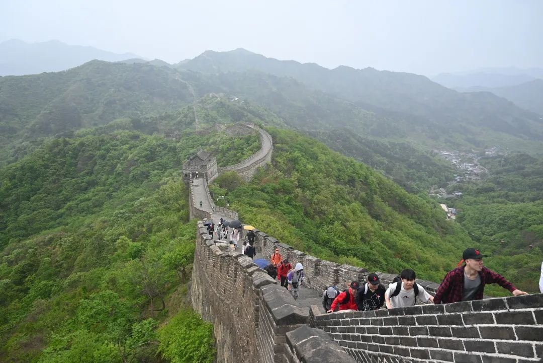 慕田峪长城位于北京怀柔区,以其险峻壮丽而闻名于世。抵达慕田峪,我迫不及待地踏上了长城。雨水滴落在石阶上,增添了一份神秘的氛围。我沿着蜿蜒的山路攀登而上,感受着长城的历史与庄严。虽然视线有些受限,但朦胧的云雾中,长城苍劲有力的轮廓显得更加雄伟。登上城楼,我俯瞰四周,只见云雾中若隐若现的山脉和绿树,令人陶醉其中。慕田峪长城以其险峻的地势而著称,我在攀爬过程中不断面临挑战。但每一步都是对自己毅力的考验,也是对古人英勇精神的致敬。站在雨水浸湿的城墙上,我仿佛穿越时空,感受到了古人曾经的辛勤和智慧。尽管下着小雨,但雨水并没有冲淡我们的热情:有人雨伞相伴,有人淋着雨悠然自得,更有人放声高歌。大家在长城上留下欢声笑语,互相拍照留念,淅淅沥沥的小雨反而让这次游玩增添了几分浪漫。慕田峪长城之行虽然遇上了小雨,但我收获满满。那壮丽的长城、浓密的云雾都让这次旅程变得难忘。我心中留下的不仅是对长城的景仰,更是对中国悠久历史和伟大文化的敬佩。