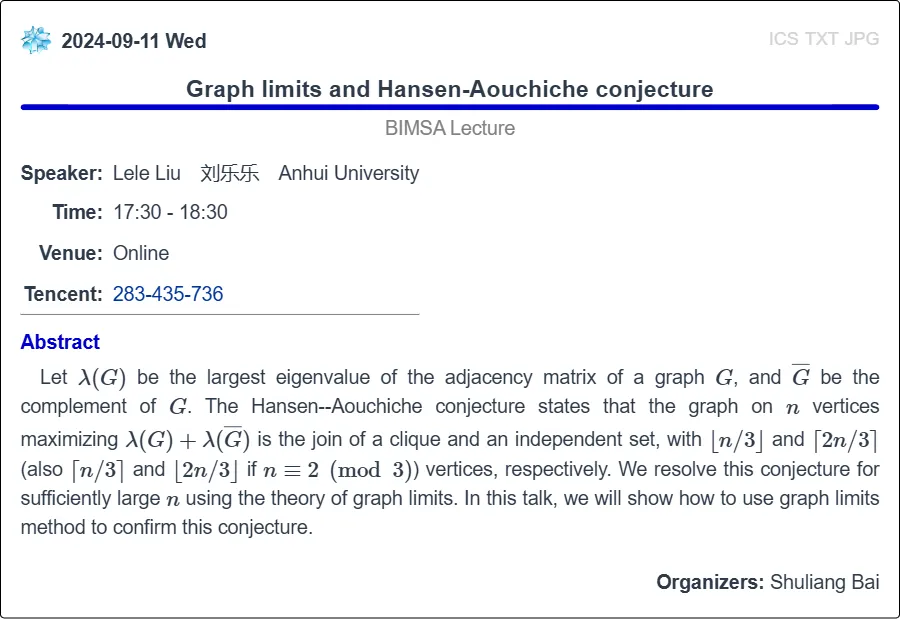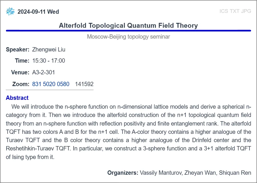 BIMSA周三讨论班(09.11