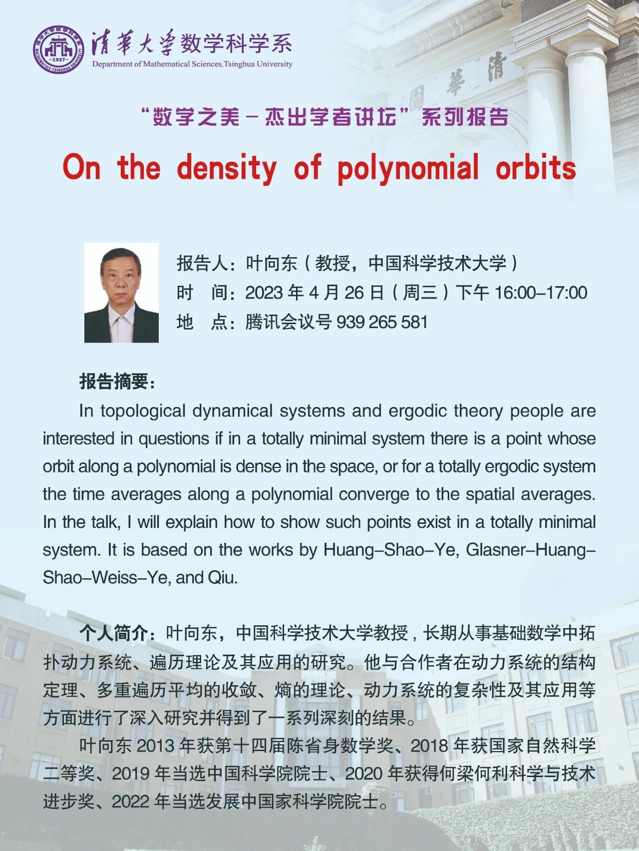 AbstractThis talk will focus on the mathematical concept so-called A-polynomial, which characterize the knot complement from an algebraic viewpoint. I will discuss the classical A-polynomial and its physical interpretation. Then I will talk about the quantization of the A-polynomial.Speaker王昊,可乐小说网 丘成桐数学科学中心博士后,主要研究领域为超对称规范场论及其相关的数学结构。个人主页://...