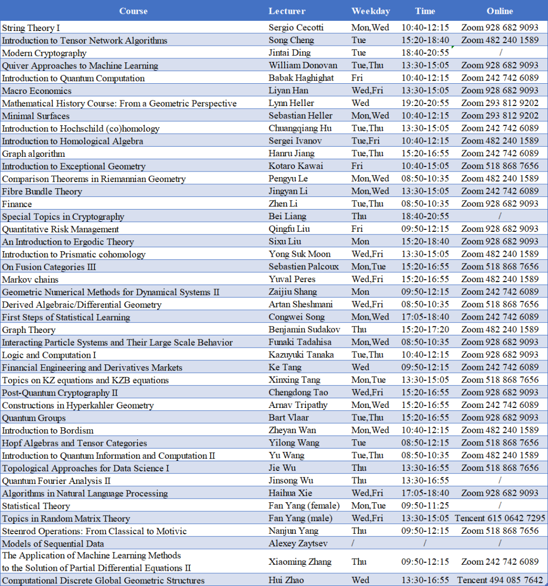 BIMSA2022秋学期 公开课信息一览