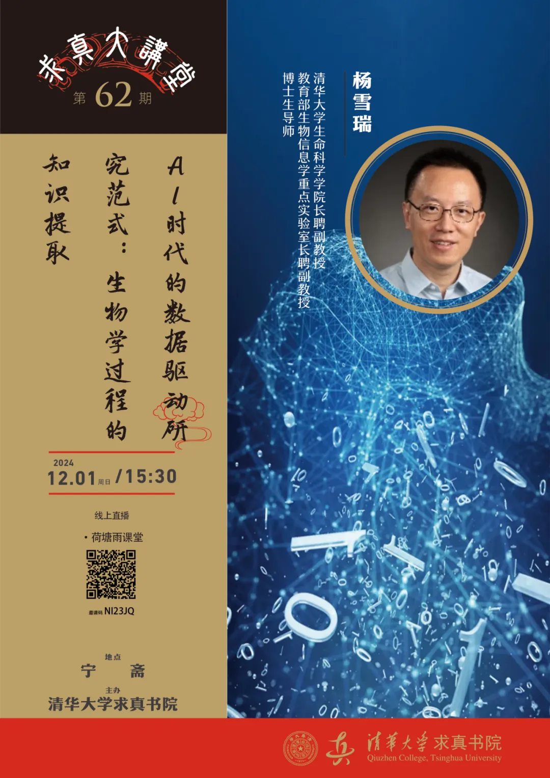 求真大讲堂预告 | 第六十二讲:AI时代的数据驱动研究范式:生物学过程的知识提取
